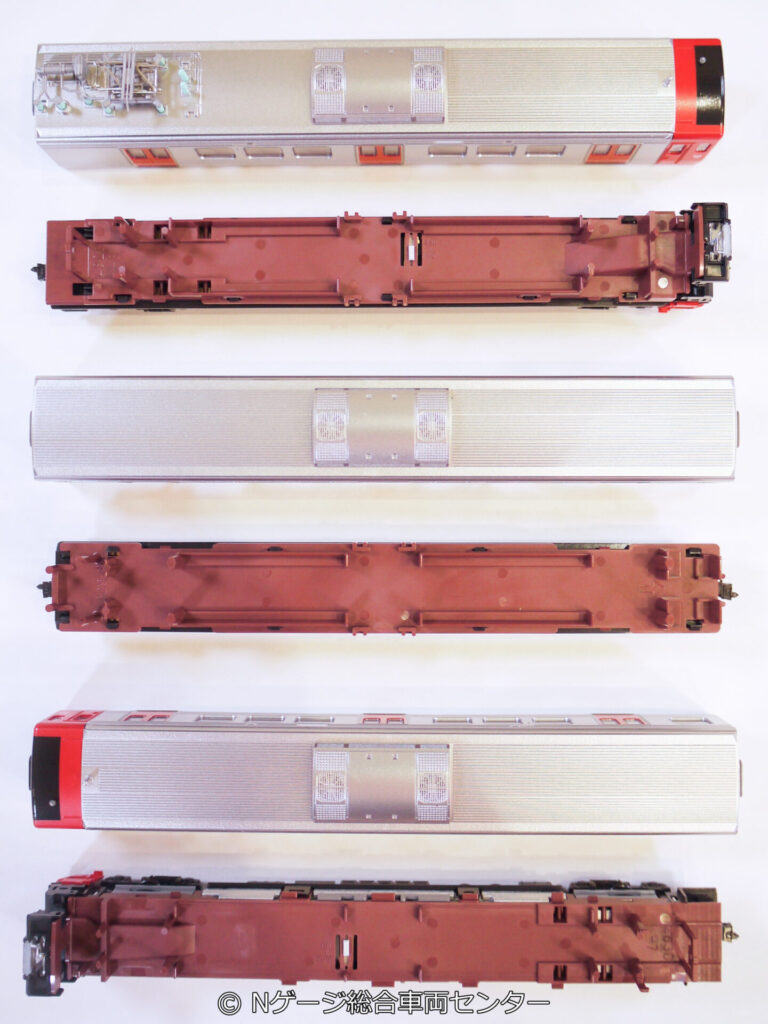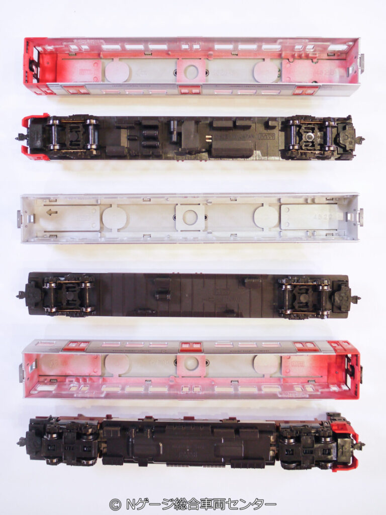 なお、車端部のみボックスシートですが、クハ・クモハ、サハの片側は室内灯設置の関係上、ボックスシートの表現が省略されています。