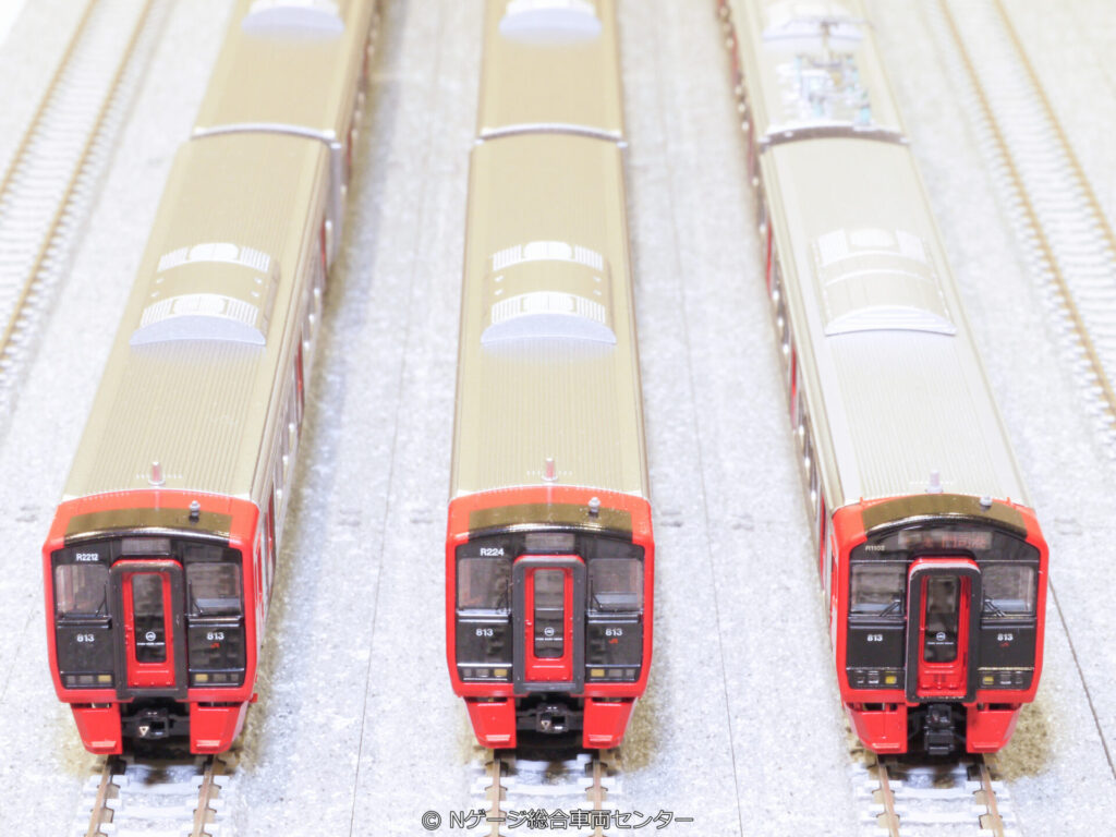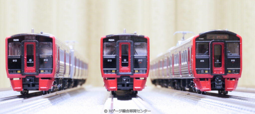 ■ 左から、サハ813-2212(KATO)、サハ813-224(KATO)、モハ813-1102(ポポンデッタ)となります。