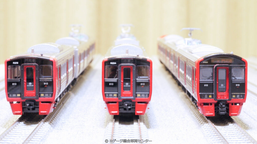 ■ 左から、クハ813-2212(KATO)、クハ813-224(KATO)、クハ813-1102(ポポンデッタ)となります。