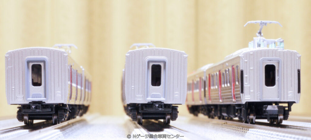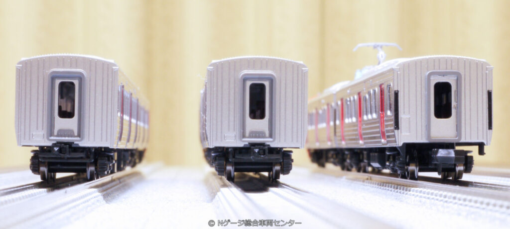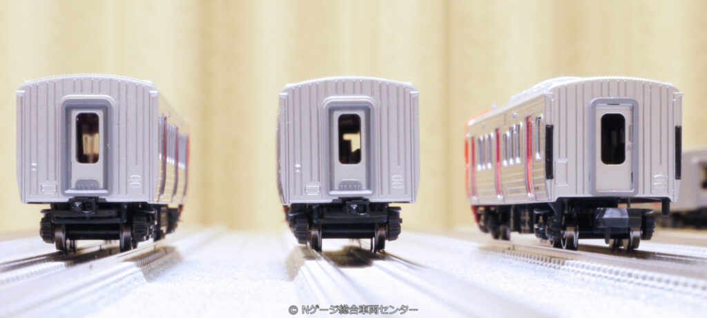 一番右のポポンデッタは、連結面の転落防止幌まで再現しているのが特徴です。(KATOでは省略)