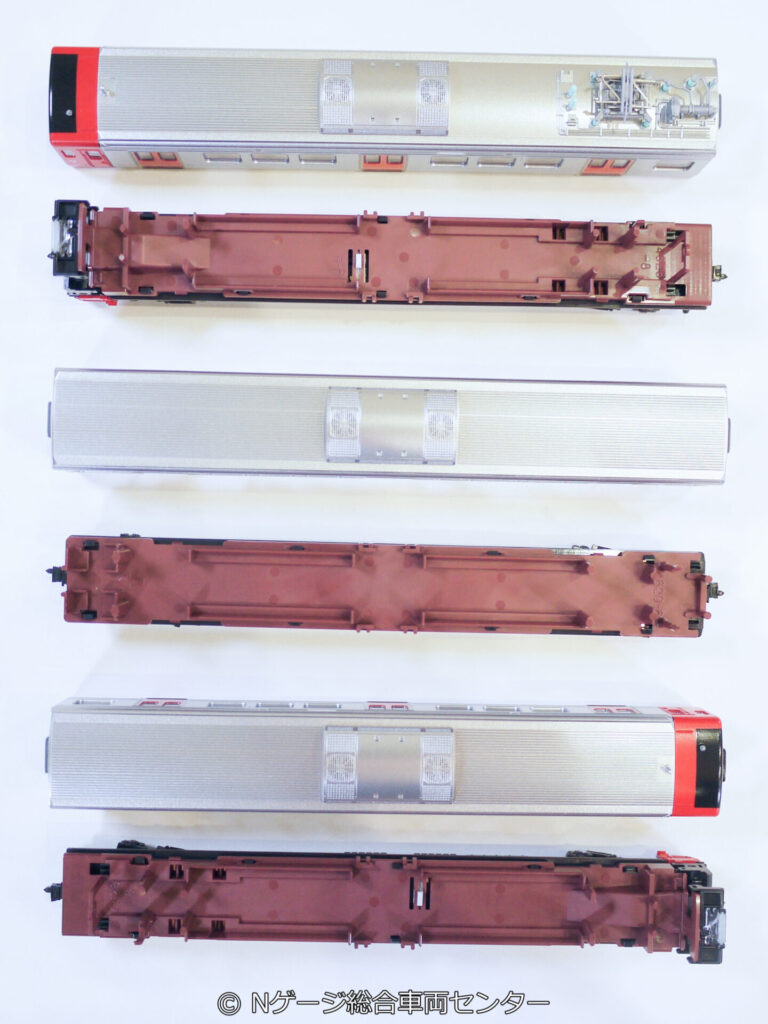 - 先頭部、中間連結部ともにKATOカプラー密連形(フックなし)標準装備。先頭部用に電連(2段)が付属