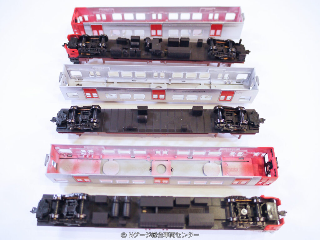 - 各車とも側面乗降扉に描かれた数字が撤去された外観を再現