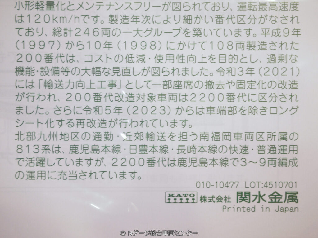 | 10-2047 | 813系2200番代 3両基本セット(RM2225編成) | 13,000 | 14,300 | 2025.7 |
