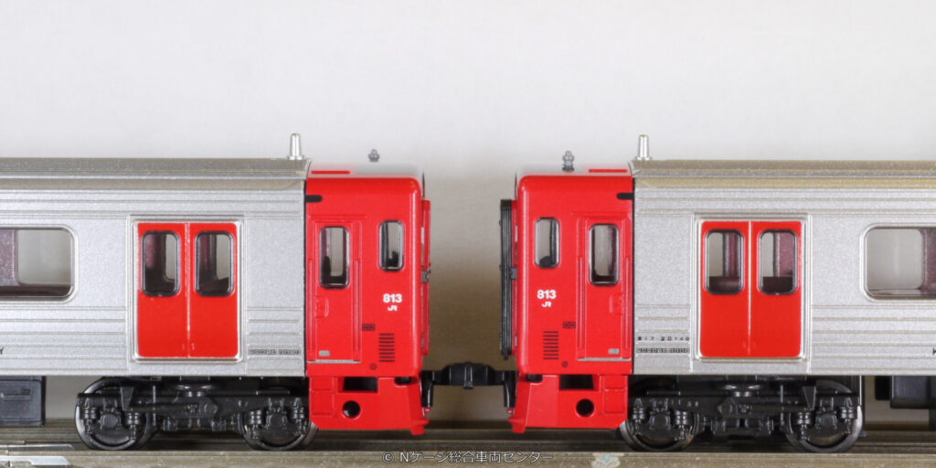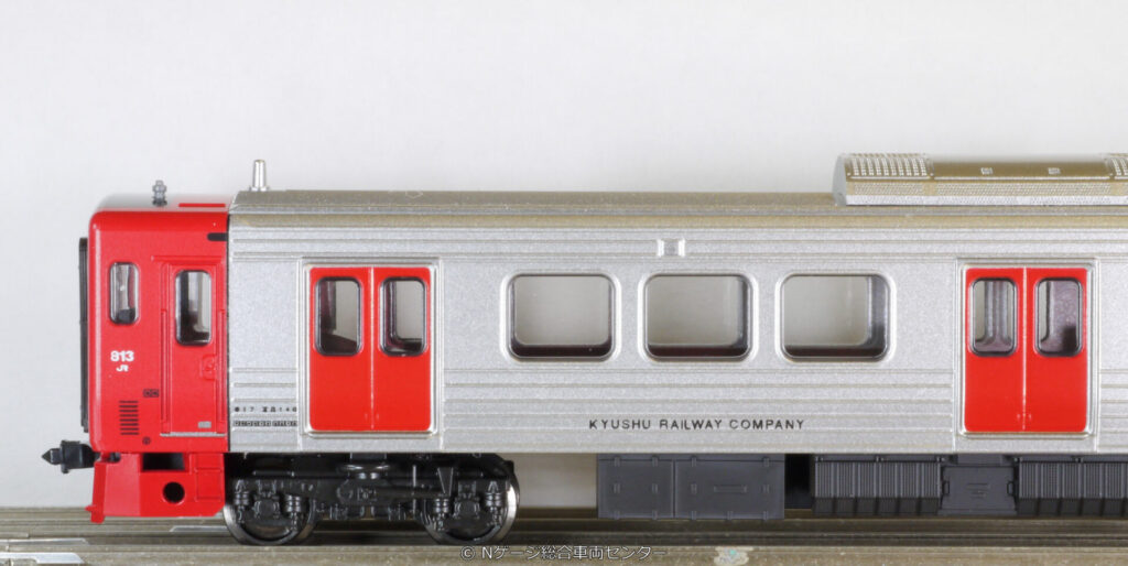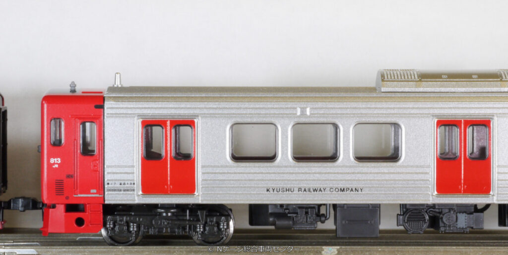 ポポンデッタは車番が明確に判読可能(左:モハ813-1102)ですが、KATOは車番が潰れて明確に判読するのが難しい(クハ813-2212)です。